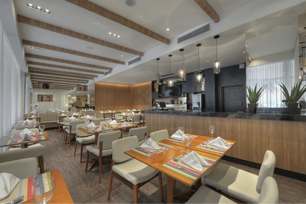 Os mais deliciosos pratos, lanches e drinques. Localizado no lobby.