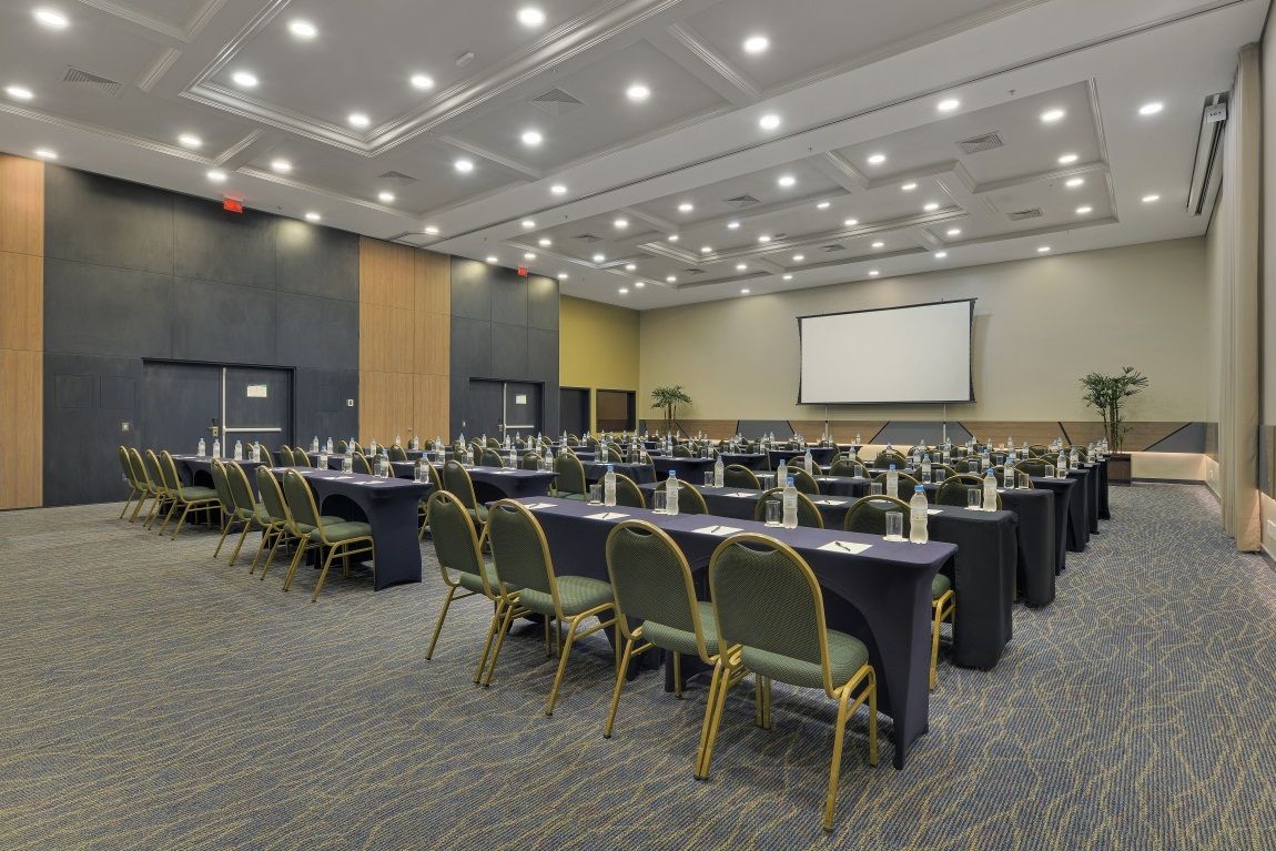 O Centro de Convenções do Deville Prime Porto Alegre oferece instalações completas e profissionais especializados para assessorar seu evento. Com um total de 10 salas, Espaço Gourmet localizado na área externa em frente à piscina, e um amplo foyer de 250m² para montagem de estandes, a capacidade total é de até 880 pessoas e há conexão wi-fi em todas as salas.